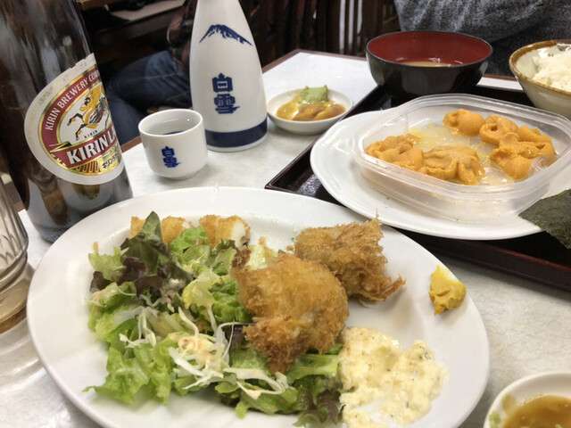 ウニが雲丹でうわああああってなって(意味不明)、熱燗だけじゃ追いつかないから、定食セットにしてご飯もらった。