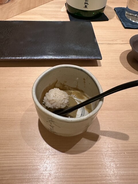 食べ終わったら酢飯を入れてくれます。肝ソースを絡めて頂くのが最高!