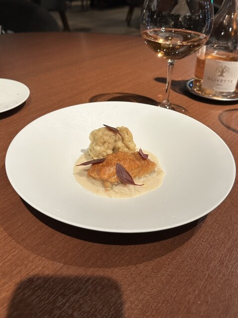 - タラの燻製と白子のベニエ 白菜のクレーム +¥750