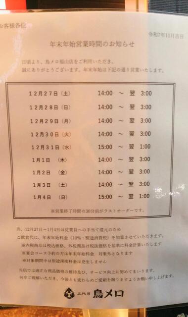 三代目 鳥メロ 福山店 開店~閉店までずーっと飲み放題(税抜)2,300円