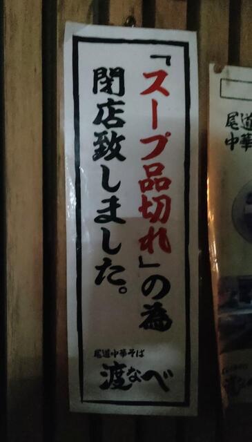 尾道中華そば 渡なべ スープ品切れのため閉店しました