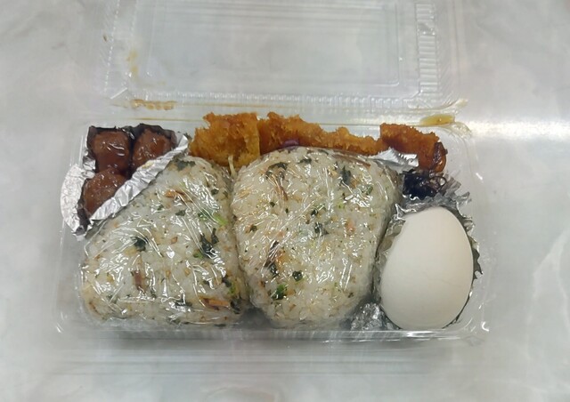5. 弁当BOX(M) かしわ飯にぎりメンチカツミートボールしそ昆布茹玉子