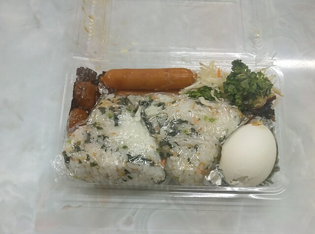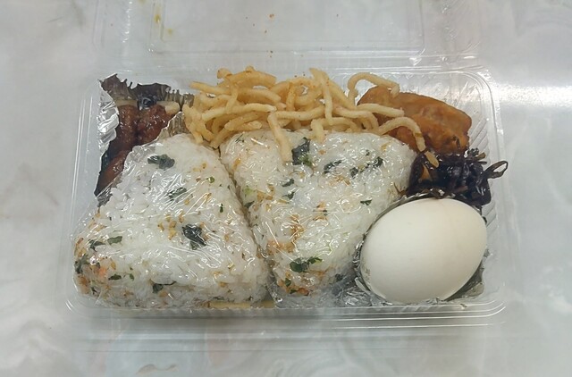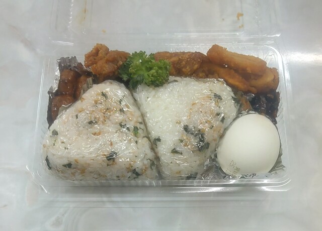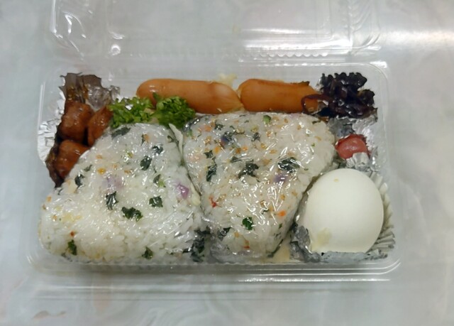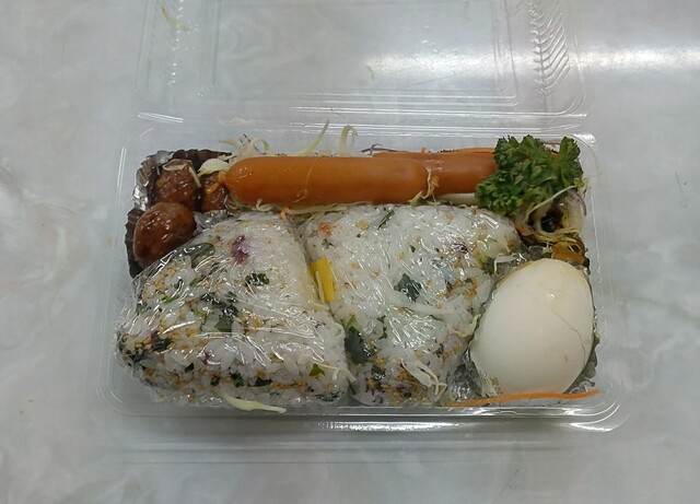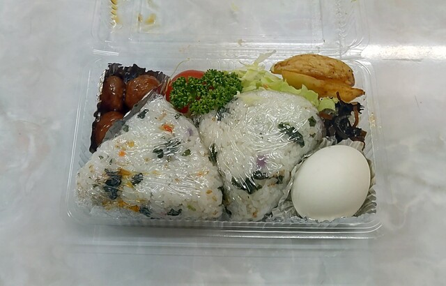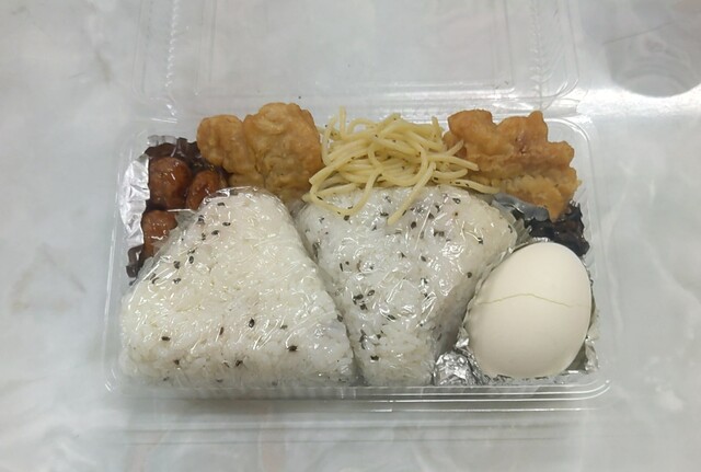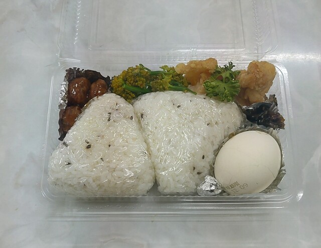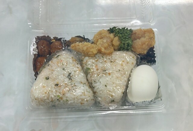 揚げ物天ぷら2種炊き込みごはんむすびミートボール他