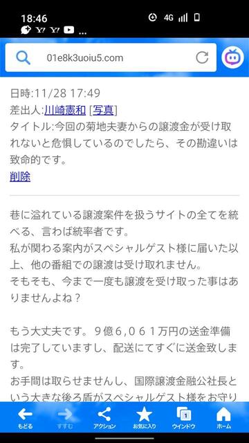 2025.11.28(金) ①迷惑メールがとまらない ②9億6061万円もらえる?!⇒即刻削除ヨシ (2025/11/28)