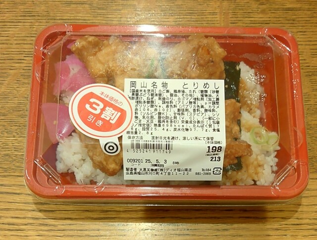 そしてこの弁当、税込価格でも213円。群を抜く地域最安値の激安弁当に感謝です。