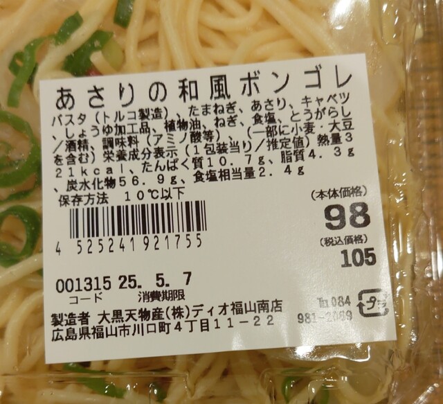 舞茸の和風パスタ (税抜)99円 (2025.11.25)