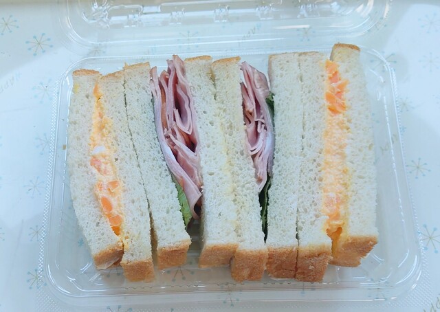 こちらはハム、ポテトサラダ、たまごサラダのサンドイッチとなっています。