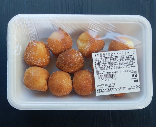 「ひとくち玉子ドーナツ (税抜)99円」などを購入しました。順を追って紹介します。
