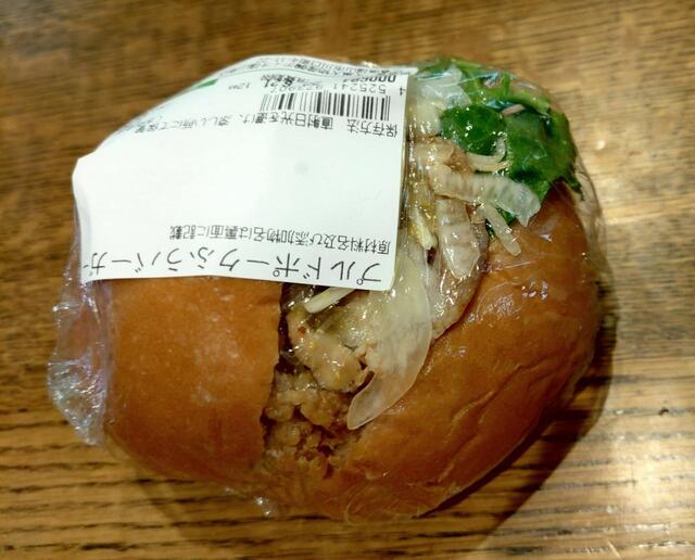 プルドポークふうバーガー (税抜)128円 ※反対側から撮影 (2022.06.20)
