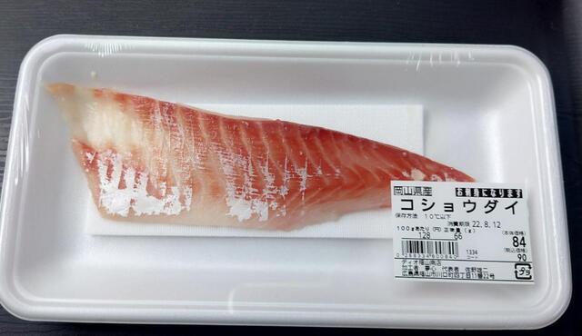 黒鯛(チヌ)刺身用 132g (税抜)195円 (2022.10.06)