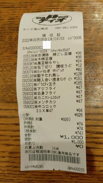 計7点買ってドンピシャリ!ちょうど1,000円の支払いでした。