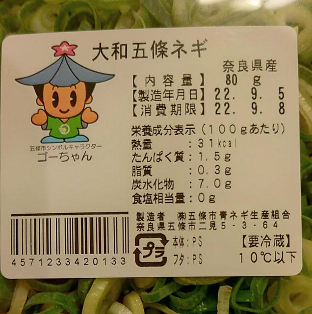 大和五條ネギ80g (税抜)82円 ※開封後 (2022.06.20)