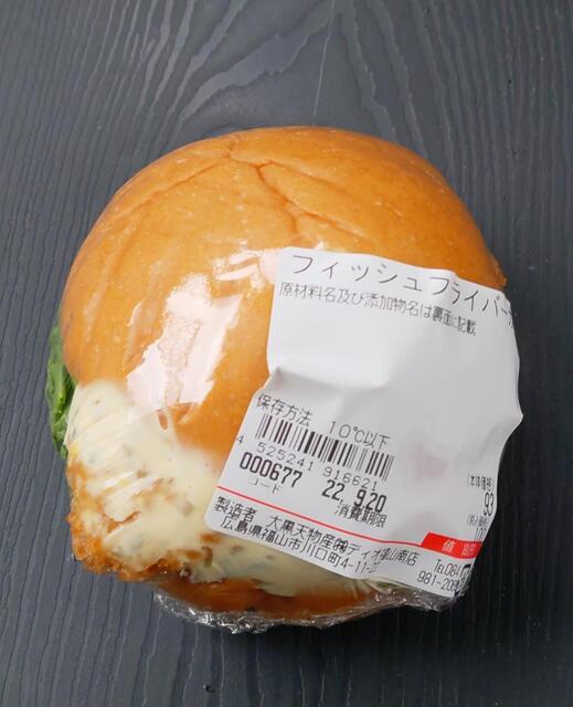 フィッシュフライがハーフとレタスとタルタルソースが中に入っており、サンドされています。