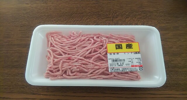 国産のミンチがなんと!100g=73円は安い。見た目も良い。