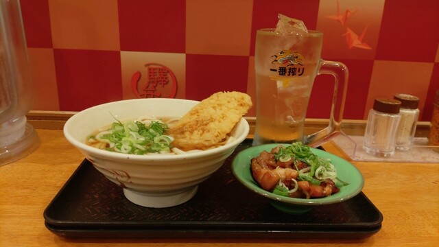 広島駅から徒歩3分!この日は立ち食いうどん・そば屋で『生ビール』と『おつまみ×2品』を