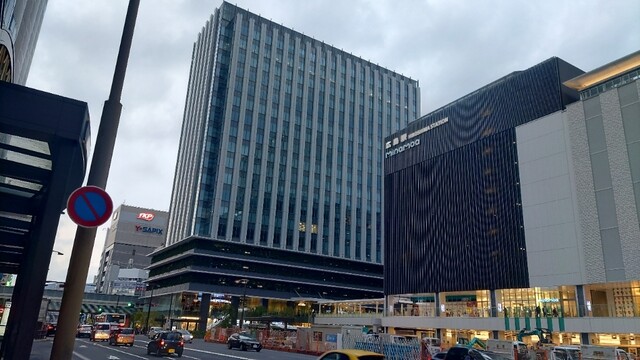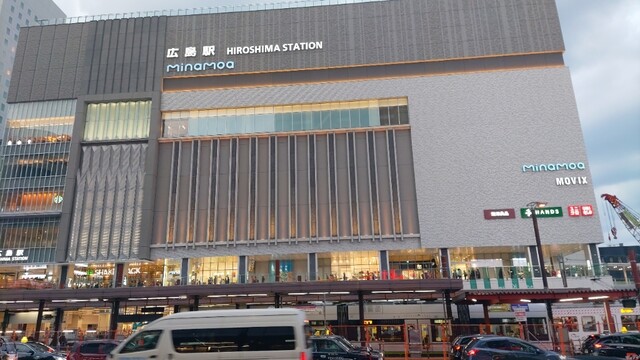JR広島駅の目の前に位置する非常に高いビル「ビッグカメラが入っているBIG FRONTひろしま」。