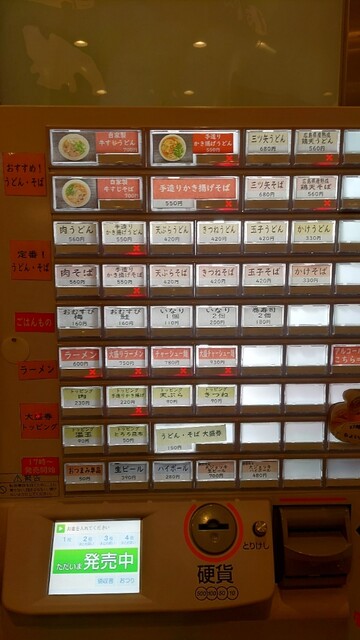 この日は「レモン酎ハイ」「おつまみ」「天ぷらうどん」の食券を購入です。