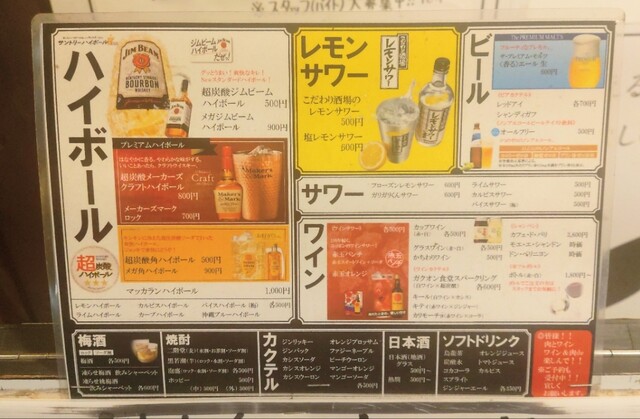 ハイボール、レモンサワー、ビール、サワー、ワイン、梅酒、焼酎、カクテル、日本酒、ソフトドリンク (2025.11.15)