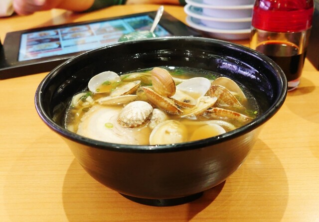 出汁が濃く良い味。主役のあさりは小さ目なものが5個。あさりの身が美味しい。