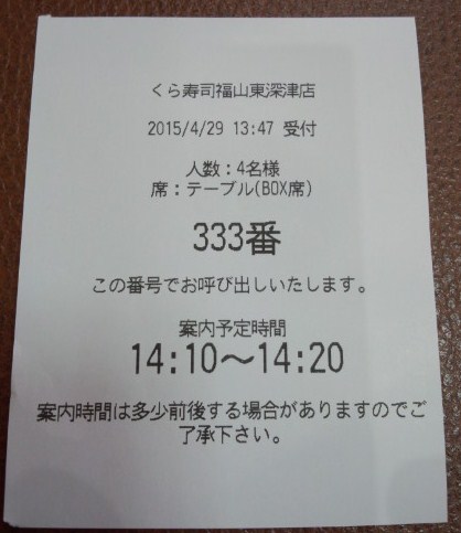 ラッキー?! 待合札333番!(^^)!(2015.04.29)
