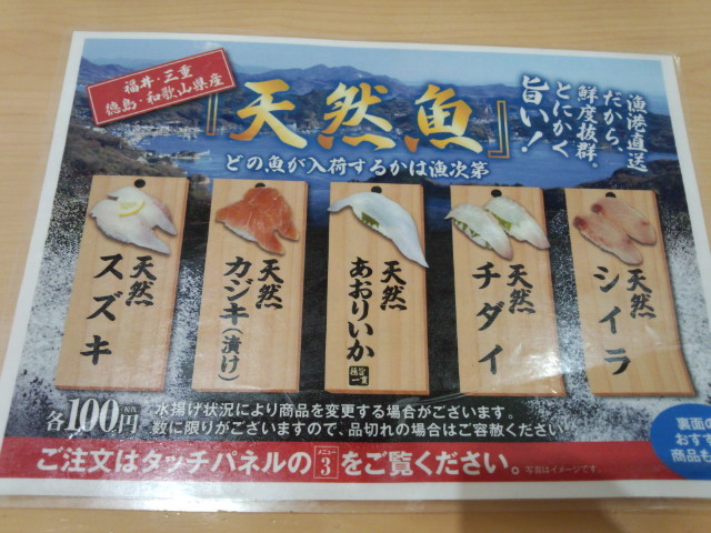 メニュー表 漁港直送!「天然魚」(2015.06.13)