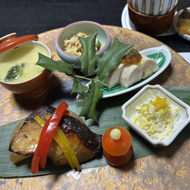 2025/12/22 名古屋に帰省し久しぶりの兄姉と食事。義姉の知人の紹介で、こちら可ん寅さんを予約。創業90年の大老舗です。名古屋生まれ、名古屋勤務の経験もあるのに、なぜか一度も来たことがなかった。夜は2万超えの高級店もランチなら1万円未満のメニューがあります。集まった6人のうち半数はふぐづくしの「口福膳」ランチ、半数は季節食材の懐石「すずらん膳」ランチで。口福膳はふぐの唐揚げ、てっさがメイン。こちらのてっさは関東と違い厚めに切ってあって歯応えと贅沢感があります。すずらん膳では鰤の焼き付けメインに多くの料理が彩ります。ご飯は皆でふぐ雑炊。これがとてもボリューミー。途中で下戸の兄が頼んだだし巻き卵はとても甘くて独特。名古屋の方は正月用にオーダーしてテイクアウトされるんだとか。ラストはふぐキャラクターの最中で〆ます。あんこが好きなんですねぇ。ご挨拶に来られた女将もチャキチャキでした。コスパめちゃくちゃよいふぐ割烹です。