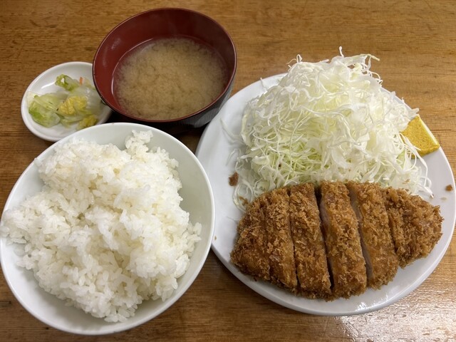 サクサクで衣薄めなロースかつは厚切り、1~1.5㎝くらいの厚さで迫力満点、そしてやわらか、ほんのりと甘くて肉質も申し分ありません。