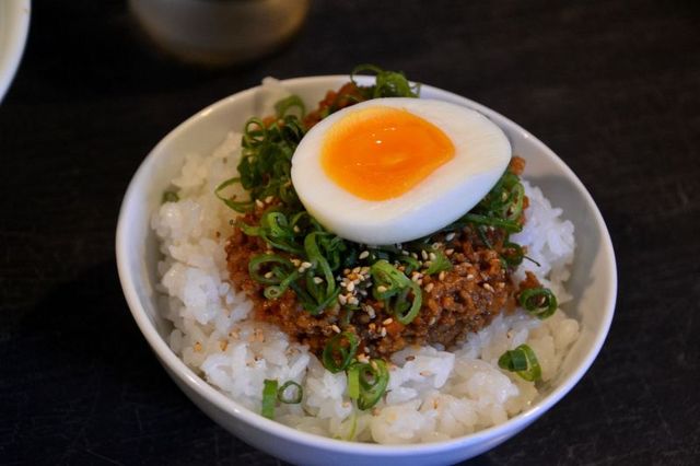 肉味噌卵ライスは特製の肉味噌ををほかほかご飯と卵に合わせました。