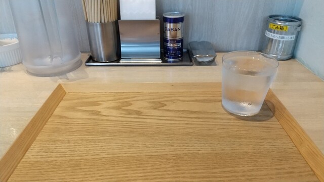 そして店内に入って、アルコール消毒して券売機のメニューを見て『宍道湖しじみつけ蕎麦(醬油) 1,500円、味玉 150円』の食券を買って店員さんに渡して、案内されたカウンター席に座ります♪
