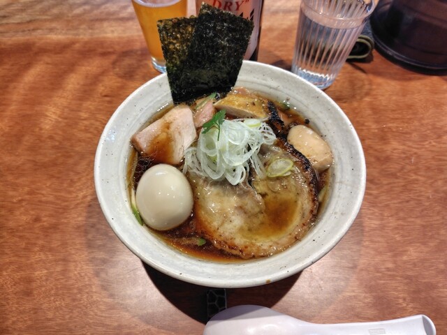 私は11:29に店内に入り、店内の券売機のメニューを見て『特上 醬油らぁ麺 2,000円、アサヒスーパードライ 中瓶 600円』の食券を買って、店員さんに食券を渡して指定されたカウンター席に座って待ちます♪