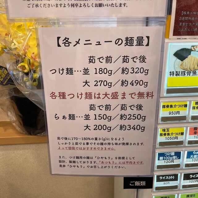 豚骨魚介と淡麗醤油の2種類があり今回は豚骨魚介らぁ麺の大盛に