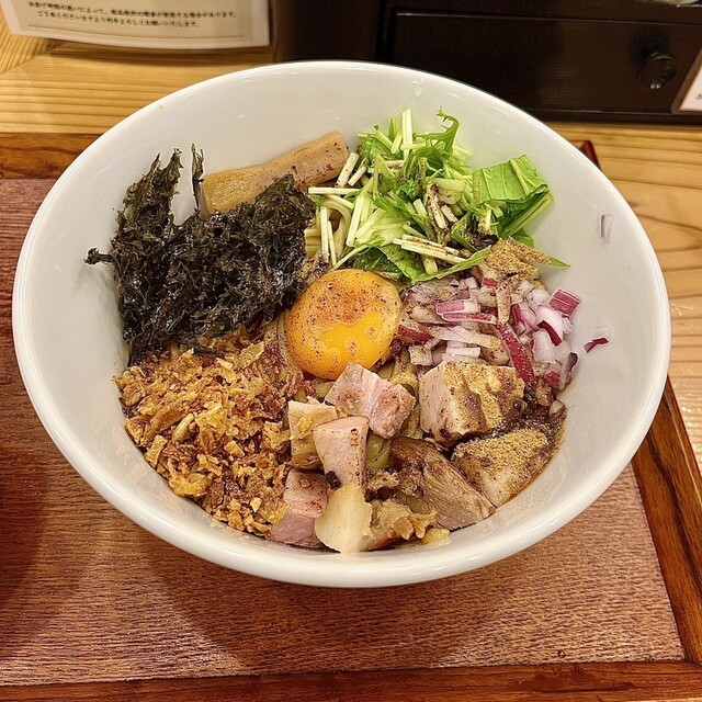 濃厚な豚骨と魚介の旨味のまぜそばに