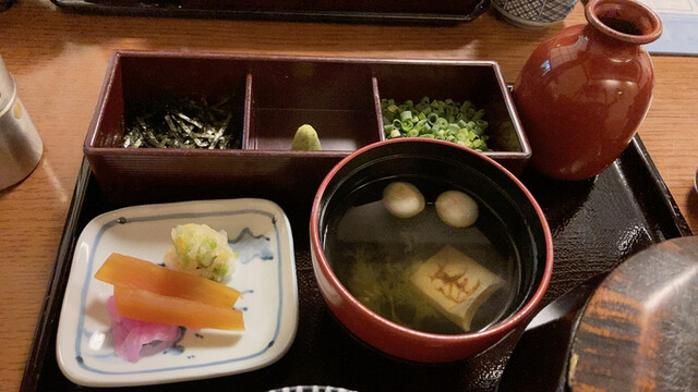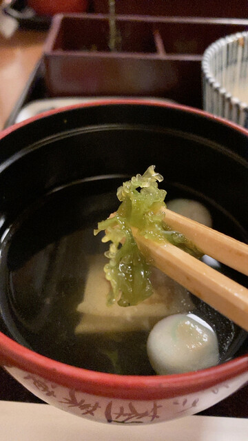 「蓬」の文字が焼き付けられた湯葉入りの吸い物