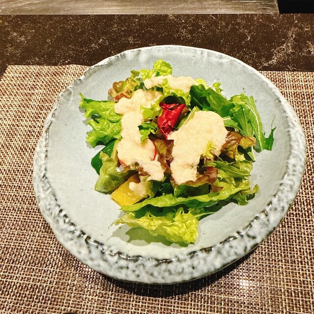 オニオンのドレッシングが濃厚で、なかなか新鮮なサラダの味でした。