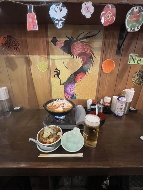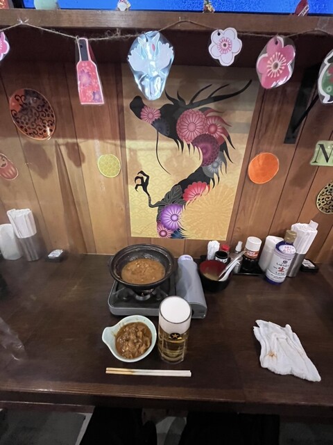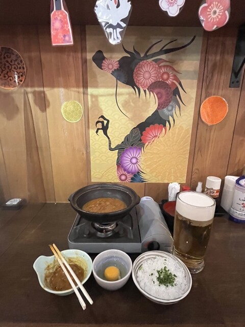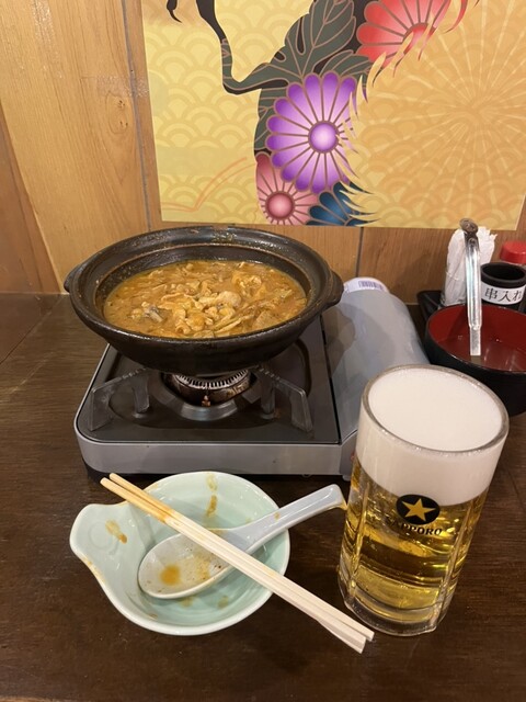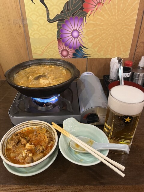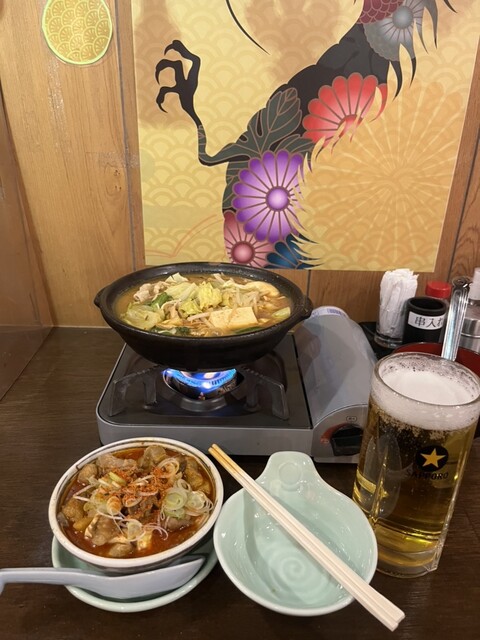 さらに追加で辛い牛モツ煮込み。