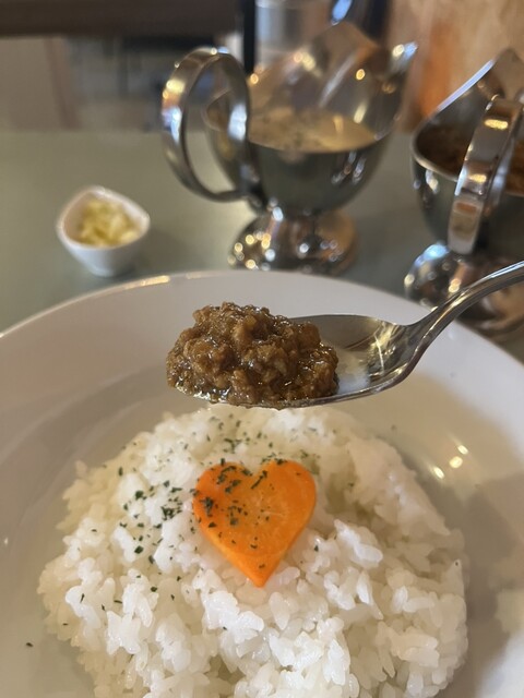 キーマカレーチックなルーとベシャメルソース(ホワイトソースの方が分かりやすいかな?)とライスが三位一体となり、五臓六腑を刺激する。