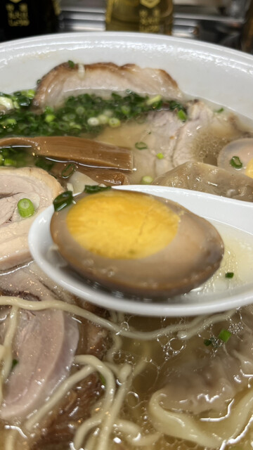 青葱、メンマ、海苔の標準装備の中、更に醬蛋が。