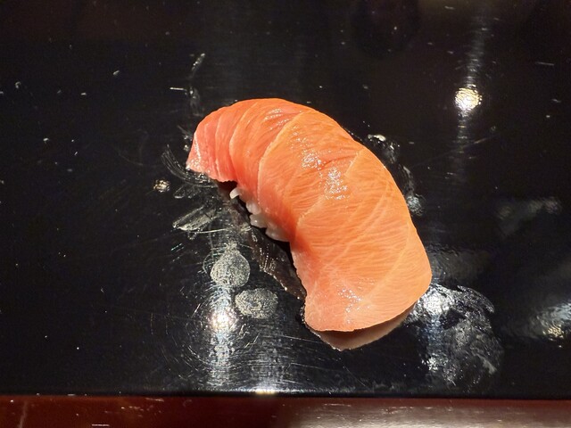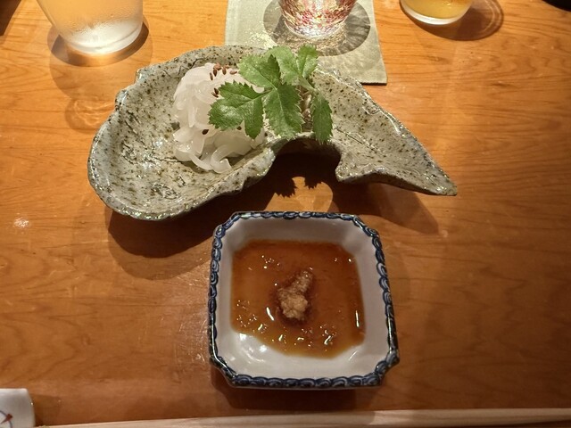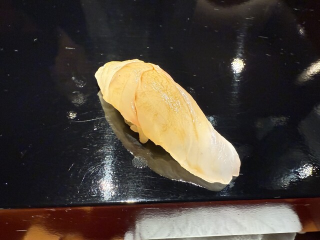 一品目は赤いか。細くそうめんのように切られ、胡麻が振られている。北陸ならではの食べ方で、見た目も美しく、口に入れるとその優しさと旨みが広がる。続く握りも、どれも丁寧な仕事がされていて、ひとつひとつに季節と手間を感じる。