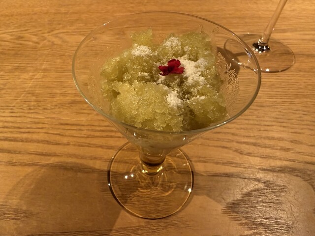 ワインはフルペアリングに加え、金沢の白ワインもいただいた。派手さはないが、料理に寄り添うセレクトで、特にカニとの相性を意識した優しい酸とミネラル感が心地よい。料理の余韻を邪魔せず、自然と次の一皿を待ちたくなる流れがよく考えられている。