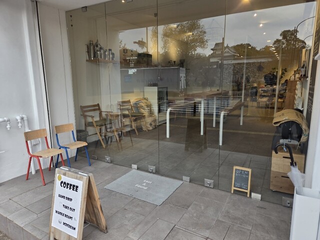 真っ白で明るい店内からは、舞鶴城の大手門が見え、とても気持ちの良い空間です。