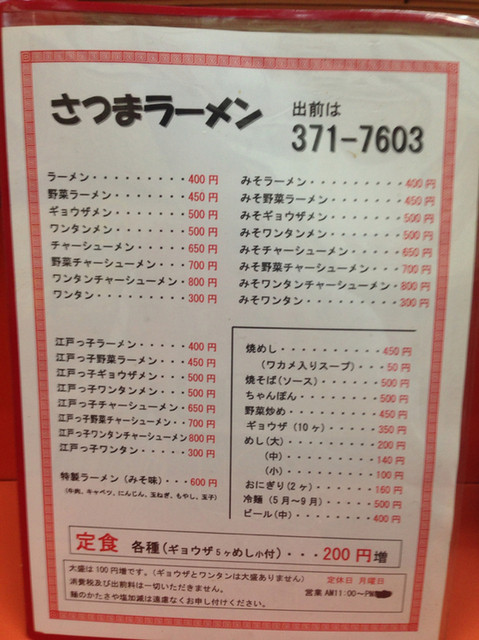 ラーメンが400円、定食、飯、餃子付が600円!安!