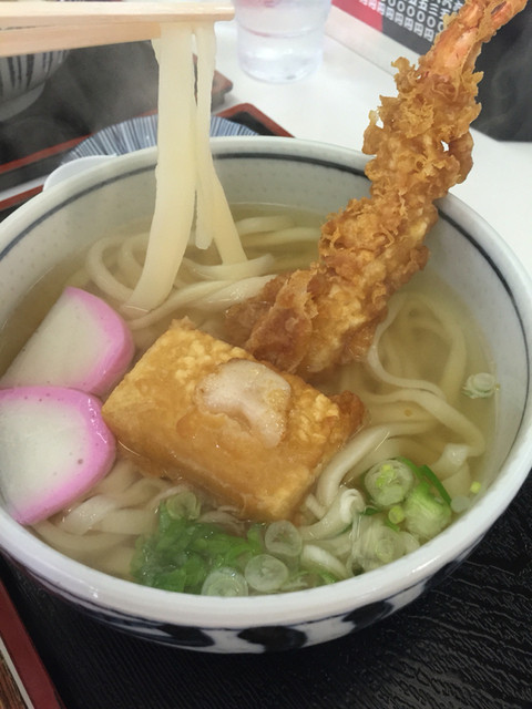 アツアツのエビ天や野菜、角が立ったうどん麺がコシの強さを物語っております。