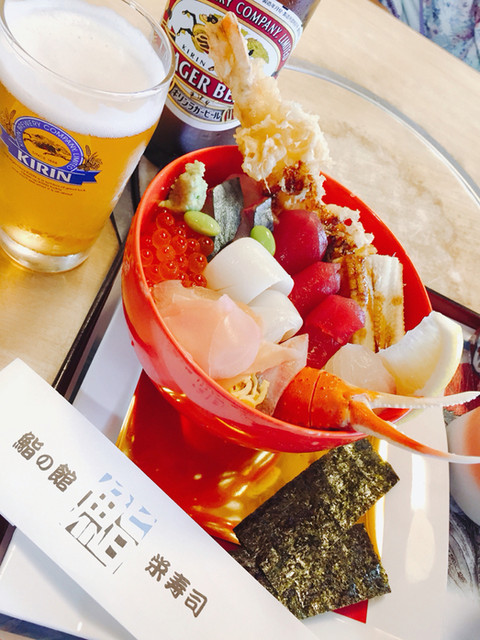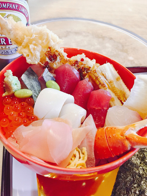 それでも十分な食べごたえ!サバ・マグロ・イカ・イクラ・アナゴ・カニ・海老天と豪華な仕上がり!