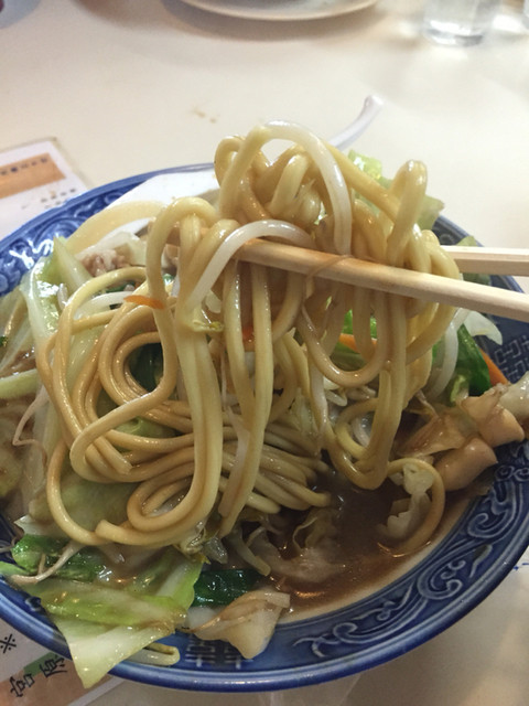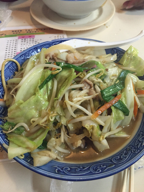 チャンポンも普通におしいい!野菜がドカッ”と盛ってあり、太麺のチャンポン麺とよく合います。