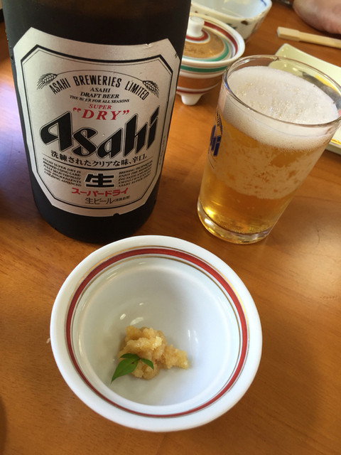 ビールを注文し、先にコースの「うるか」をツマミに風景を楽しむ
