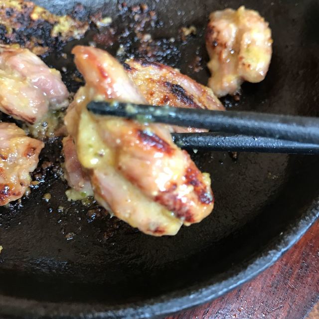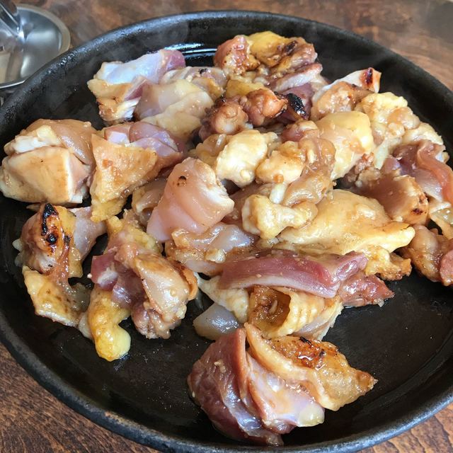 地鶏独特の、脂の甘みとコリコリの肉!皮を少し焼き歯ごたえを楽しむ!