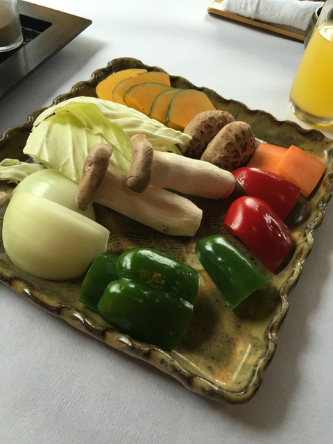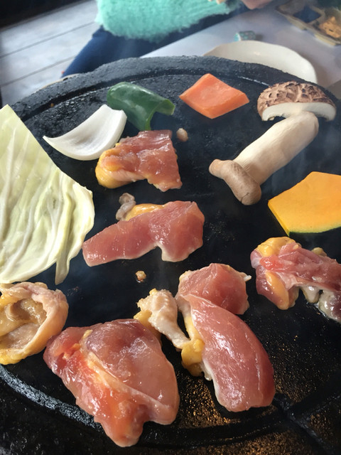 コチラは土鍋にあらかじめキジの出汁でとったスープが準備され、野菜、つくね、から煮てきます。