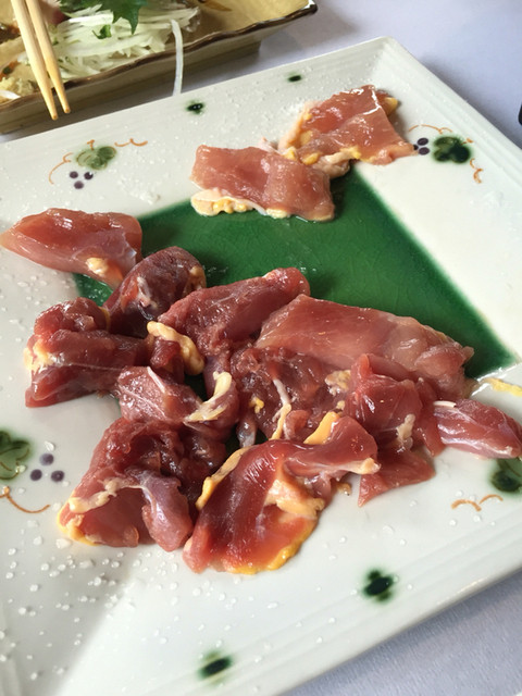 お次は「キジ肉のタタキ」これがまた、臭みもなくさっぱりした赤身で弾力があるが鶏とは違う食感。