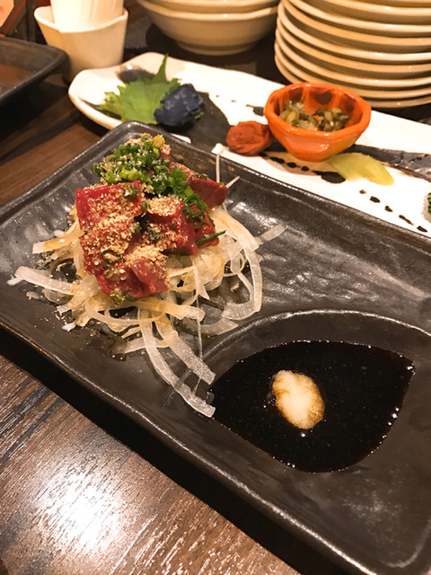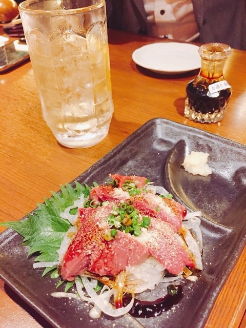 コチラは馬桜グループの居酒屋なので馬刺しが美味い!霜降りもいいが、個人的には「赤身」が好きですね~甘口の九州醤油で食すと美味さ倍増!新鮮さが分かります。