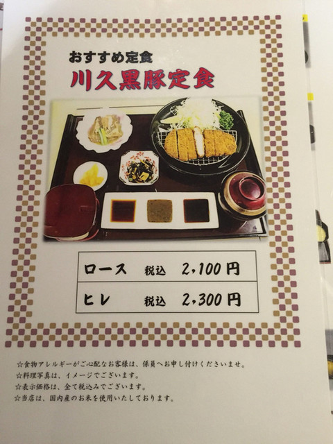 リーズナブルなメニューと、黒豚メニューの大きく分けて2種類あります。